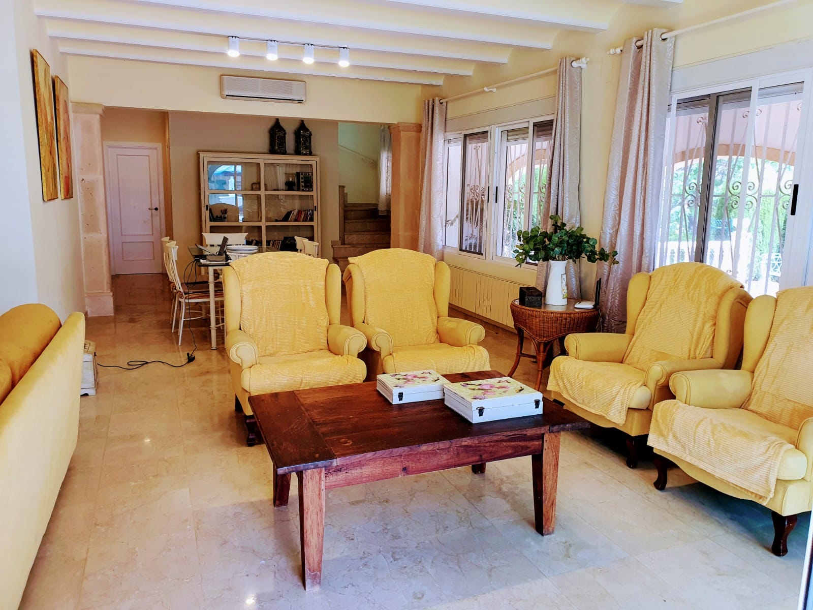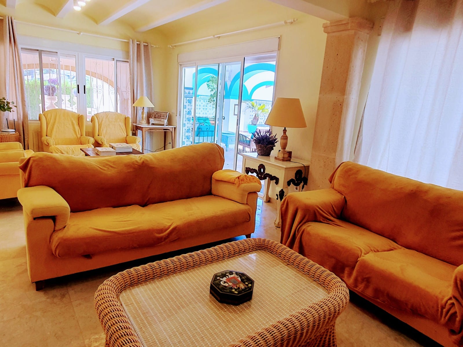 Stunning Large traditional villa of 268 m² construction, plus a guest apartment of 32 m², on a plot of 1,305 m², situated on the very sought-after area of Tosalet in Jávea. The main house comprises of a spacious living & dining room with fireplace, an ample fully fitted kitchen with dining area, 5 bedrooms, 2 bathrooms and a guest toilet. There is also a loft of 148 m², a large interior patio of 250 m² and another smaller patio for Summer dining. The independent apartment comprises of a bedroom (at present used as a billiard room) and a bathroom. Outside is the large swimming pool of 72 m² with a large surrounding terrace and the lovely garden. There are also 2 storerooms, an utility room and a huge garage of 250 m². A beautiful and unique villa not to be missed.